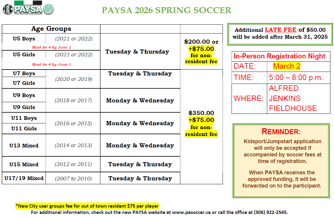 Don't forget you can register you in person on March 2nd at the Alfred Jenkins Field House